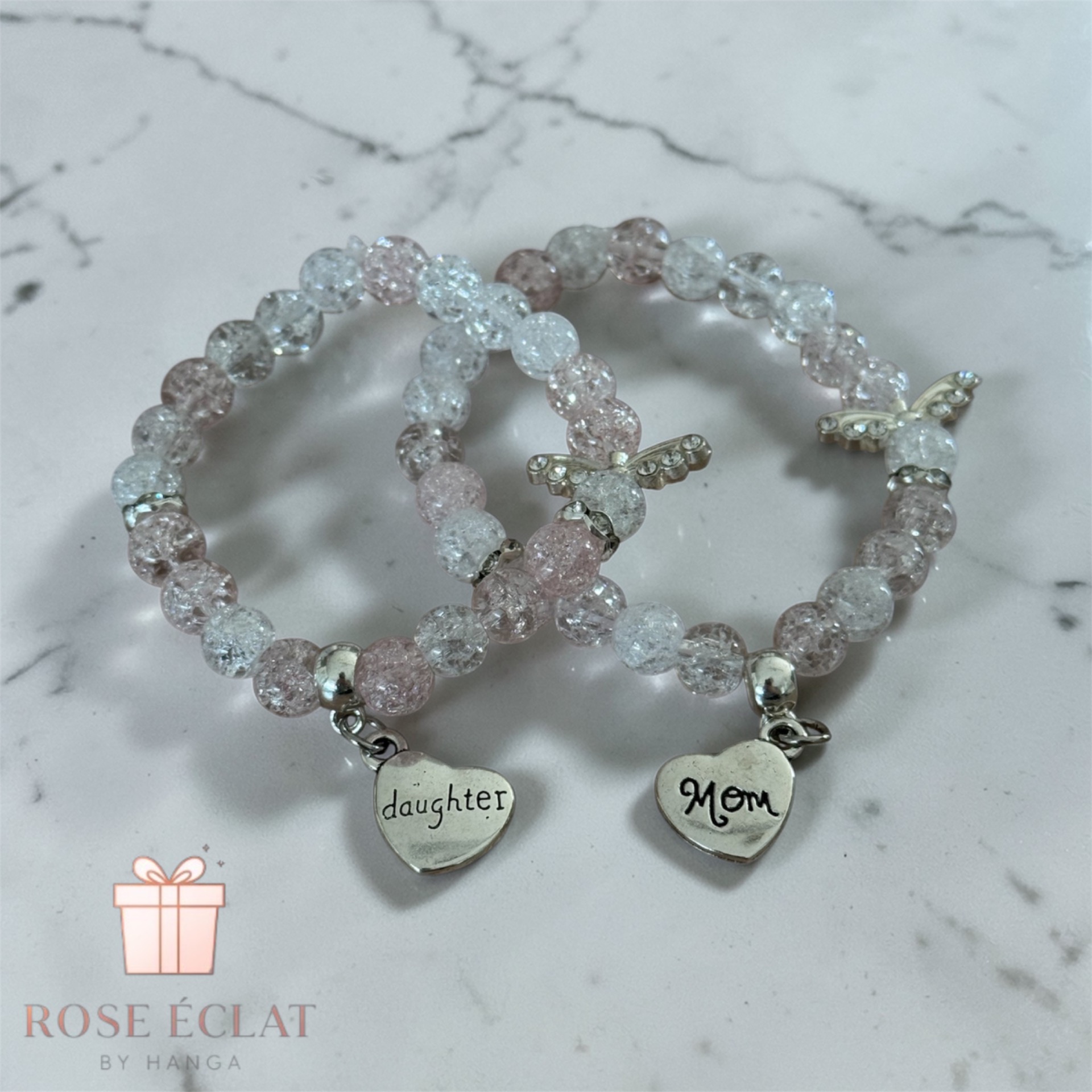 Az anya és lánya közötti szeretet egyedülálló és megbonthatatlan. Fejezzétek ki ezt a csodálatos köteléket ezzel a finom, nőies páros karkötővel, amely mindig emlékeztetni fog benneteket egymásra, bárhol is járjatok a világban!